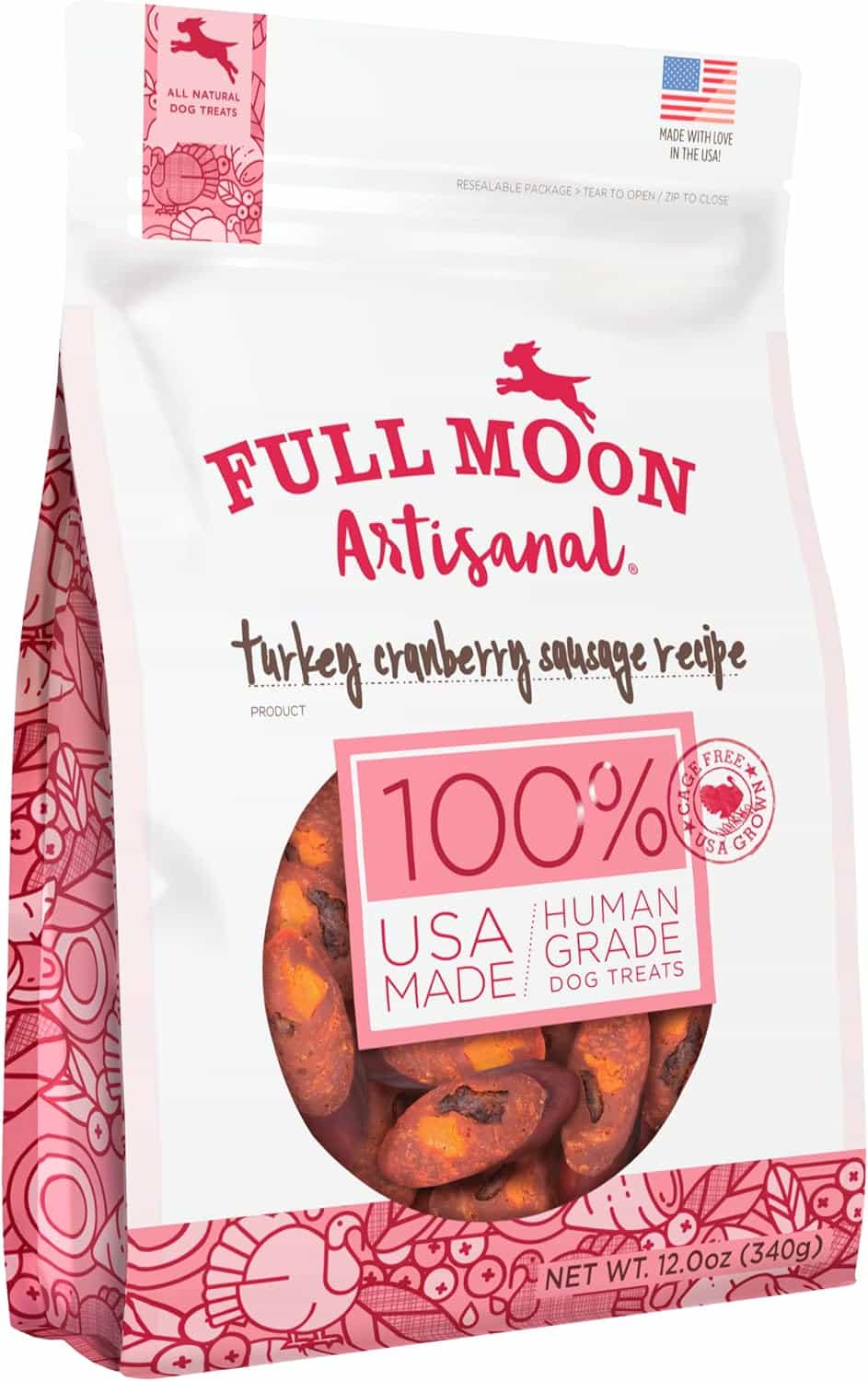 For the canine version of a turkey feast, Full Moon’s Turkey Cranberry Sausage delivers savory cage-free turkey combined with tart cranberries in a chewy, meaty format. It gives your dog a bite of Thanksgiving flavors—turkey and cranberry—that are usually reserved for the human table, but packaged safely for pups. A fun treat to toss into their bowl on the big day so they get their own special “sausage” moment.