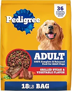 My Rottweiler is on Pedigree Grilled Steak and vegetable flavor. Once a week, I give her salmon oil