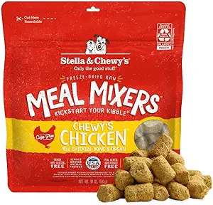 I feed my dog IAMS in the blue bag. Both of my dogs eat it. It is the low cal version. I squeeze a little beef or chicken broth on it and heat it for 10 seconds. I also add cooked carrots if I have any.