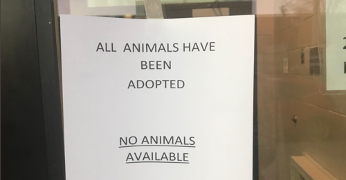 This weekend, the City Of Minneapolis Twitter account shared an image of that sign which read in all caps: ALL ADOPTABLE ANIMALS HAVE BEEN ADOPTED.