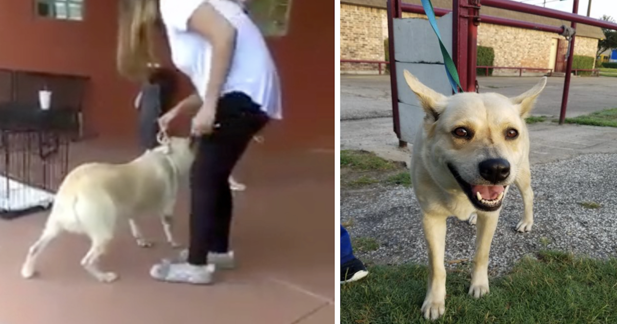 Someone took a video of a woman dragging Maya to a Texas high-kill shelter with a rope tied around her neck and legs. The woman and her children yelled for the dog to come inside, but Maya wouldn’t budge. She had realized that it was likely the end of the road for her.