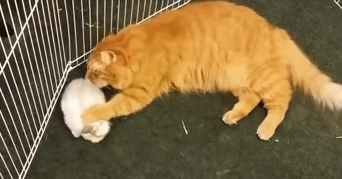 Since being uploaded to Rumble, Mango’s video has become an internet sensation, with millions of people watching in awe at his gentle nature. The sight of a large cat treating bunnies with such tenderness has resonated with animal lovers worldwide. Comments on the video poured in, with viewers expressing their admiration for Mango’s sweet behavior and marveling at the unlikely friendship between the cat and the rabbits.