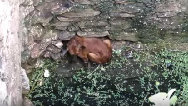 When the rescue team arrived on the scene, they worked quickly to descend down into the well to bring this poor dog back up to dry land. If it had been just a few minutes longer, this sweet dog may not have been so lucky. Watch her incredible rescue video below: