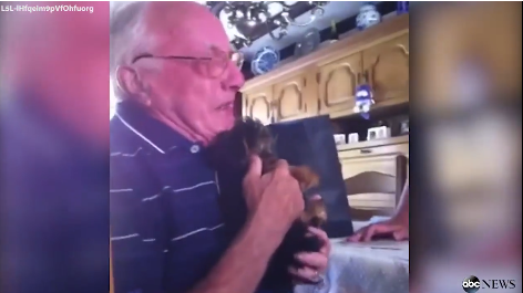 And because our pets are family, we take their loss hard, too. This poor grandfather lost his wife and his dog both in a matter of 4 months. Obviously heartbroken, his family wanted to surprise him with a special gift hoping to cheer him up. His reaction? Well, it certainly moved me to tears!