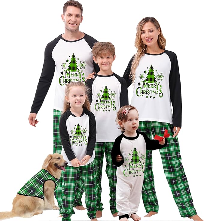 The Awoscut Christmas Pajamas for Family is a set of matching sleepwear for couples, adults, and kids during the holiday season. Made of high-quality cotton blend, these pajamas feature cute reindeer elk prints on the long-sleeved t-shirt tops and black/red or green plaid pants. Available in various patterns and sizes for the whole family, these pajamas are suitable for wearing on Christmas Eve, Christmas morning, or Christmas parties. Please note that the pajama sets are sold separately, so it is important to carefully check the size before ordering.