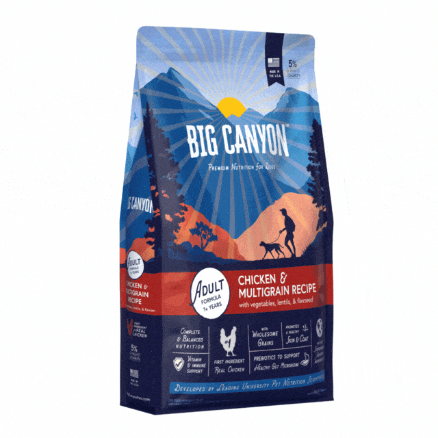 Big Canyon was founded by pet lovers who saw a clear need for nutritious, sustainable dog food that even picky dogs would enjoy. Their recipes are not mass-produced or outsourced. Everything is made right here in the USA with carefully chosen ingredients; no shortcuts, no sourcing from overseas.