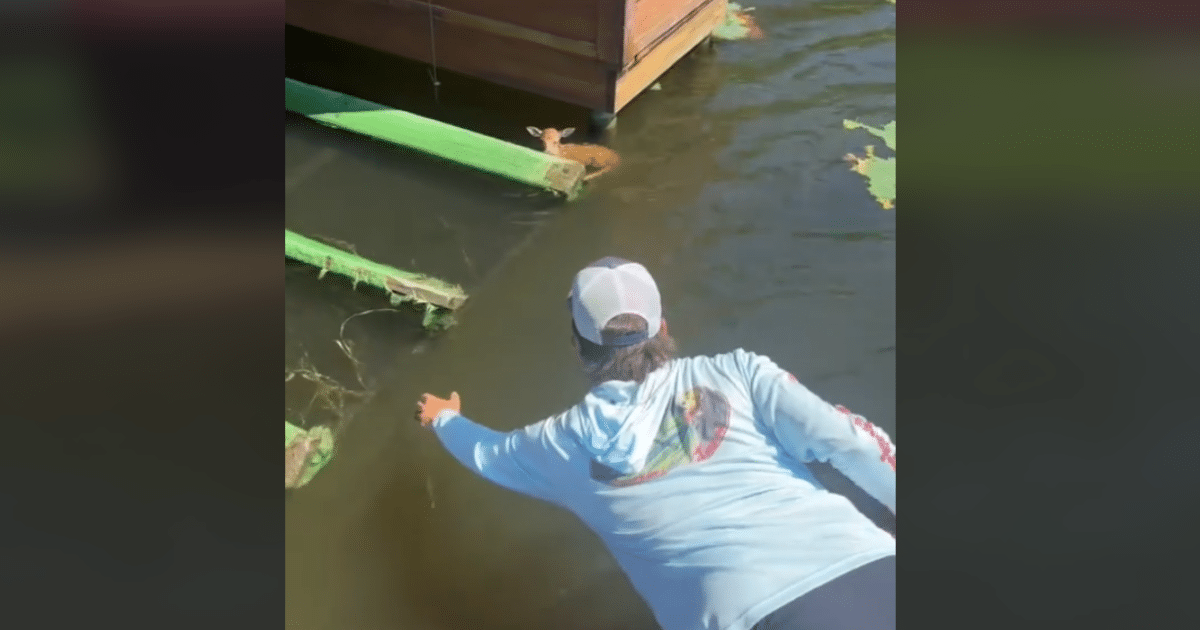 As soon as Parson spotted the fawn in distress, he guided his boat closer and leaned over the side, carefully reaching out to the little deer. Captured on video, his daring effort to pull the baby deer out of the water highlights the bravery and compassion of those who prioritize wildlife even during their daily activities. However, the fawn, likely exhausted and confused, didn’t understand that help was on the way. She kicked and squirmed as Parson gently lifted her, crying out in fear as she tried to break free from his grasp.