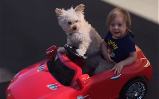 When Daisy steers it to the left, mom will correct it a little and steer to the right but watch Daisy steer it to the left again – just so darn cute!! As for Oliver, he seems to enjoy watching the world pass by as much his Ms. Daisy enjoys driving him around. Is Ms. Daisy driving responsibly? You bet she is! Observe as she watches out for her doggy friend who seems to be waiting for his turn to ride the car too!
