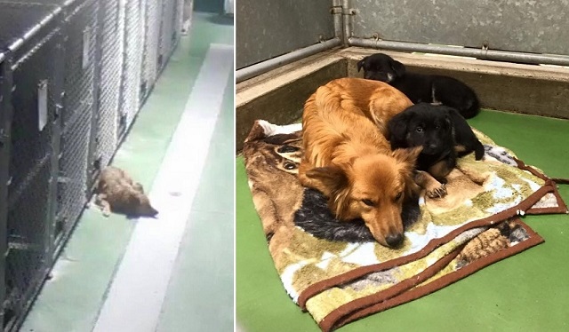 In Canada, a dog motel’s camera caught something amazing and very sweet. The Barkers Pet Motel and Grooming facility, which is also a foster center, was able to capture on their security camera a dog sneaking out and escaping her kennel just to cuddle with the puppies who were terrified and crying.