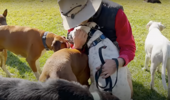 Chance came to The Farm, a rescue sanctuary in Australia after he was moments from being put down in a kill shelter. The Pit Bull was a difficult dog, showing signs of anger and aggression. He lunged at other dogs and wasn’t trusted around humans. But, despite his behavior, one man wasn’t giving up on him, no matter what!