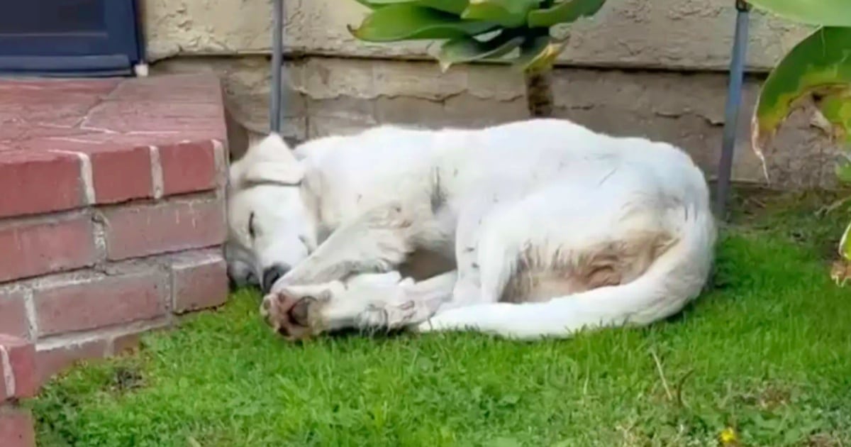 Dogs are sweet-natured, resilient creatures who wiggle their way into the hearts of strangers. The dog in this story is no exception. Aly Mac was about to take her pups for their regular walk when something unusual caught her attention as she stepped outside. Nestled in the grass of her Los Angeles yard was a white bundle of fluff. Intrigued and concerned, Aly, who coincidentally volunteers as a foster carer for Love Leo Rescue, decided to approach the fluffy figure to check for signs of life.