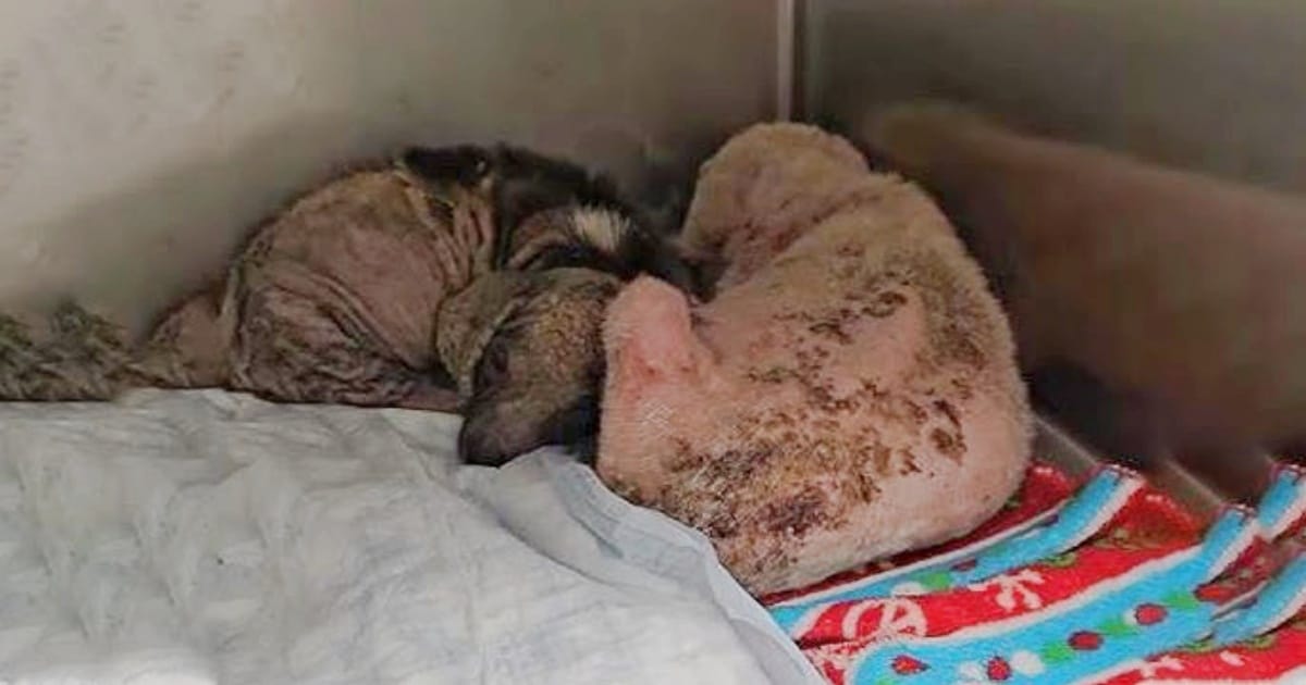 While many rescue stories begin tragically, we have the pleasure of witnessing tales like this one that end beautifully. Two precious stray puppies, Demi and Dominic, huddled together in a deteriorating building. They just had one another in the cold world they were far too used to. Their bodies were bare, riddled with mange and secondary skin infections. But they still had hope and found solace in one another’s company. Thankfully, a kind person heard their whimpers and called a local rescue group. The volunteers raced over, eager to help.