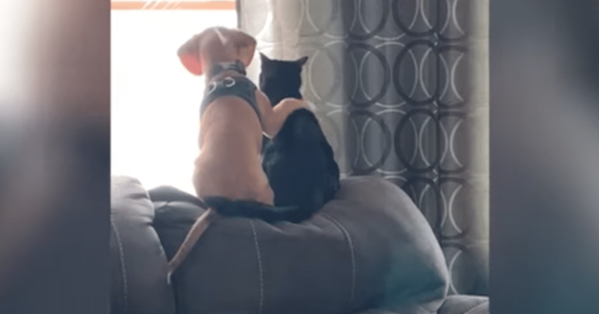 As time went on, Lisa noticed that Bo had picked up one of Jasper’s most endearing habits—the hug. Whenever the two settled down after a busy day of playing, Bo would jump up on the couch and, just like Jasper had done that first time, gently place his paw around the cat. “It’s the sweetest thing,” Lisa shared. “I think Bo learned the hug from Jasper, and now he does it all the time. They’ll sit there, side by side, Bo with his arm around Jasper, just looking out the window together. It’s such a peaceful sight.”