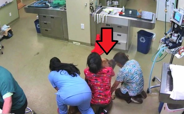 In the video below, you can see a dog at the vet. And it appears that this dog is about to get a shot or get an IV inserted to his paw. This big doggy is so scared three of the staff have to hold him. Watch the video below and see what happens when this dog tries to get away from them!
