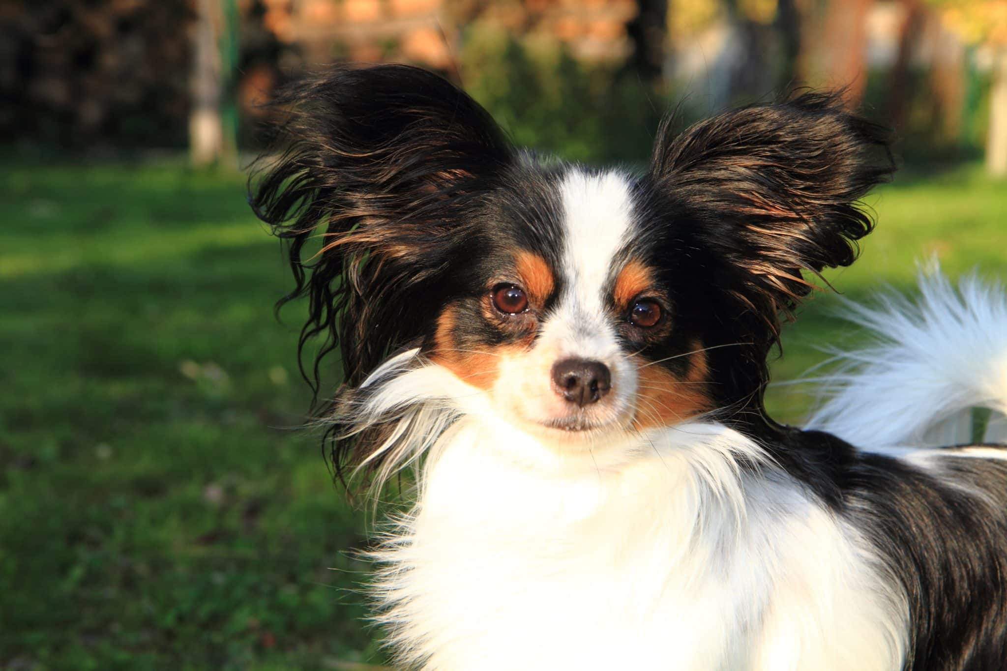 aristocratic papillon dog in the green grass