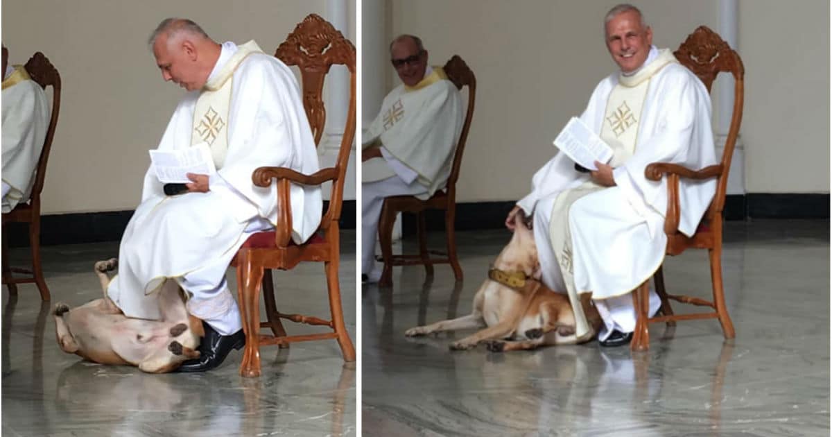 Dog ‘Crashes’ Church Service, and The Priest Ultimately Steals the Show