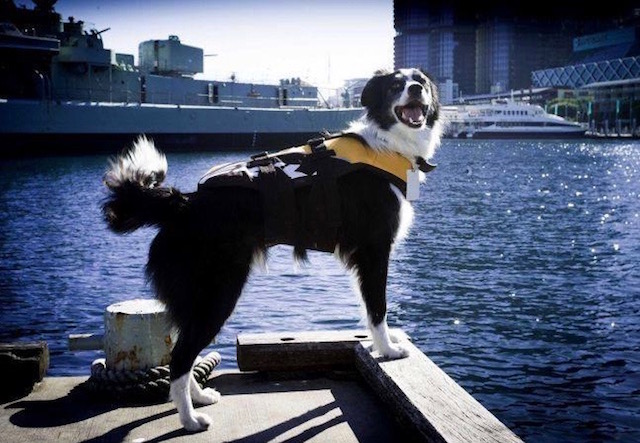 The pooch certainly takes his post seriously, sometimes getting a little overzealous when it comes to barking at the birds. He’s wound up in the water a handful of times, but luckily, his uniform is a bright yellow life vest that keeps him safe on such occasions.