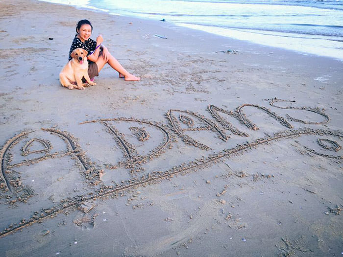 Messy, a laid-back yellow Lab, lives with his mom Oranit Kittragul and enjoys hanging out in their fenced-in yard.