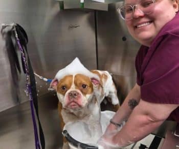 With urgency and care, Tony was brought to safety. The Wolcott Dog Pound and local police quickly stepped in, treating the situation as a serious case of animal cruelty. From there, he was transported to a nearby pet grooming facility, where a painstaking process began.