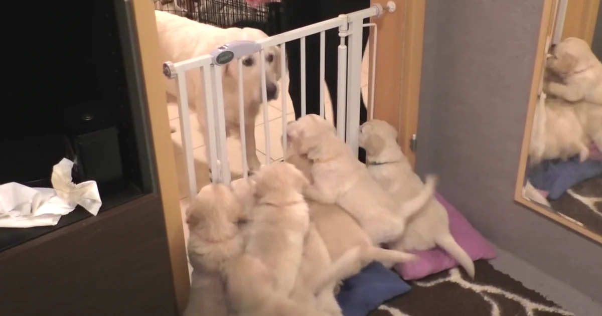 Puppies will be puppies, but it’s a mother’s job to teach them life lessons. So when this experienced mama dog enters the room to her litter of rambunctious puppies, she instills some law and order in the best and most effective way she knows how…