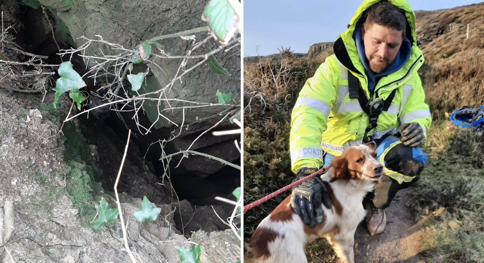 But then, two days later, someone heard a dog barking near where Henry took off. They contacted authorities, so Boscastle Coastguard and Bude Coastguard Rescue Team came to the scene. They found out that Henry was barking from the bottom of a 20-foot fissure in a cliff. So, rescuers jumped into action.
