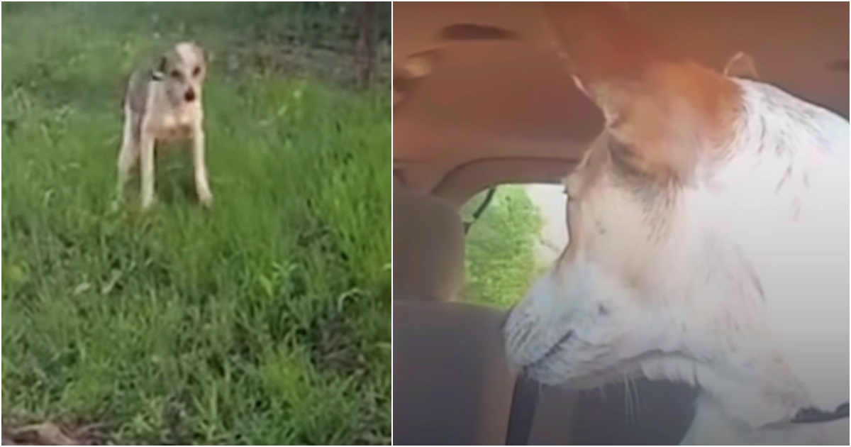 The first dog featured in the video approached Judy after she pulled her car over. The pup was frightened, unsure if Judy was there to help her or hurt her. But once the rescuer knelt down, the dog knew this woman was her savior. Judy loaded the pup into her car. The dog was so relieved to finally be safe. She looked out the back window to say goodbye to the cruel place as she breathed a sigh of relief.