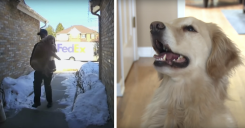 Once the driver arrived at Catcher’s home, he carried her up to the front door. The doorbell camera once again caught the moment. Now, the family will forever have an adorable video of the FedEx man delivering their pup home.