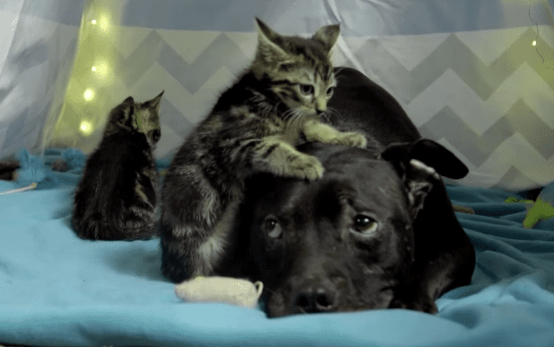 Yes, you read that right. Cherry loves kittens! She likes older cats as well and has two of her own. Her owners say that every time Cherry is around cats and kittens, it’s as if all of the stress of her life just goes away. She takes her job as a kitty nanny very seriously and has even been given some great opportunities to show off her skills. When website Bark Post and Friends of Berlin Animal Control heard about Cherry’s love, they gave her a few kittens to watch over and play with. The results are just adorable!