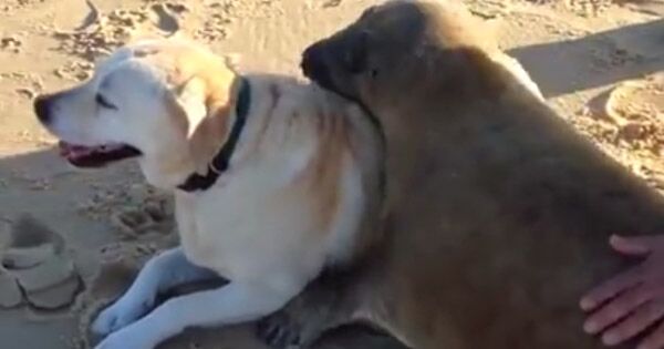 When this dog was at the beach with his human, he was rewarded with a very unlikely surprise–from an unusually friendly wild animal! We’ve never seen a video quite like this touching encounter before. Take a look at this seal that cozies right up to this Labrador and goes in for a long hug!