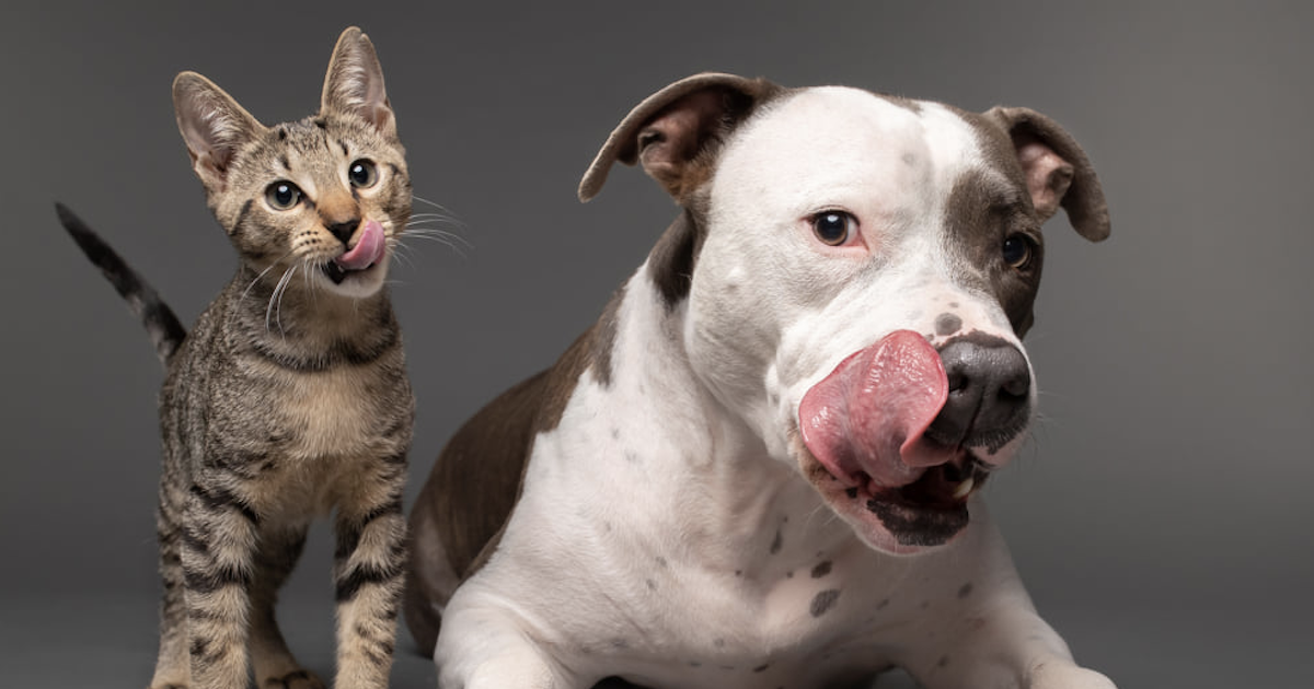 Dog and cat licking lips
