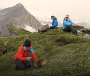 With the hiker sitting quietly, the marmot seemed to relax. It began to explore its new human friend, starting by sniffing around his hiking boots and clothing. As the marmot became more comfortable, it started to gently nudge the hiker’s hand with its nose, an action that left the hiker smiling in amazement. What was this little creature up to?