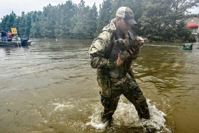 Photos have been surfacing all over social media of rescuers wading through the high water with pets, trying to keep them dry and getting them to higher ground. In such an uncertain, ongoing situation, it’s heartwarming to know that Texas hasn’t forgotten that their pets need to be safe, too!