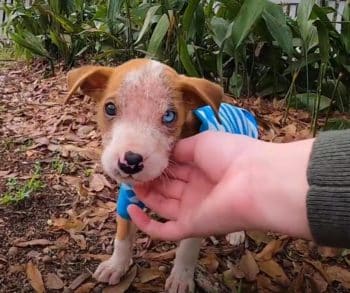 As she approached the box, Shannon’s heart raced. What she found inside would break anyone’s heart. Nestled within the cardboard walls was a tiny, fragile pitbull puppy in an appalling state. The little dog was clearly suffering. Large patches of fur were missing from his delicate body, his skin was inflamed, and his frail frame hinted at severe neglect. Yet even amid such suffering, the puppy’s spirit had not been broken. Shannon was struck by his most unique feature — his two eyes were different colors, a rare and striking trait that made him even more unforgettable.