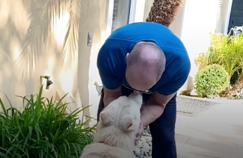 When the pup arrived at his foster home, he was withdrawn. His foster dad knew just what to do. He gave him constant love and affection and introduced the Husky to his other dogs. Within a few days, the pup came out of his shell. The dog looked to the man as if he was the only human on Earth.
