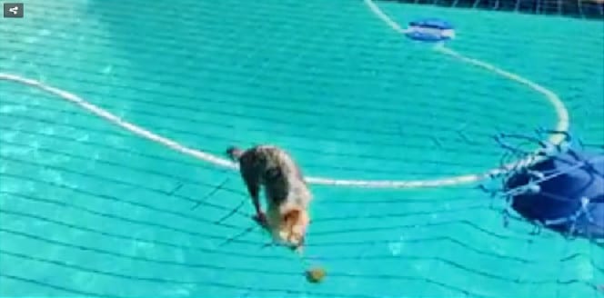 “Oh no, my ball!! Oh dear, it fell in the pool! No problem, I’ll go get it, I can walk on water you know, watch me!” Actually, this cute little dog did walk on water. Well, sort of! It’s a good thing there’s a net but what’s interesting is that the net has big holes in them yet, this little girl is so agile, she was able to get across, get the ball and come back out the pool without snagging her claws in the net!