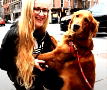 As Cesar took Loubie on walks around Chelsea, her hugging habit began to attract attention. Whenever a passerby stopped to pet or greet her, Loubie would rise on her hind legs and offer them a heartfelt embrace. Strangers who were simply out for a stroll suddenly found themselves in the arms of an affectionate golden retriever.