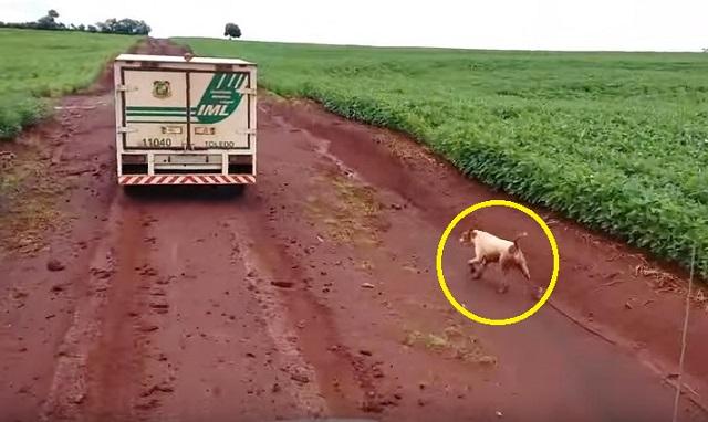 According to reporter Carlos Dos Anjos, there were two dogs following the car. The bigger dog is the one shown in the video, while the smaller one was behind the reporter’s car.