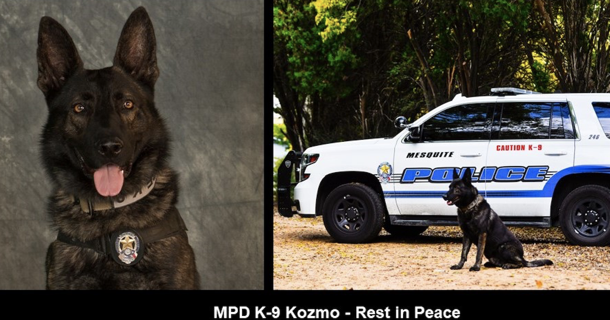 “These dogs aren’t just dogs to us. These are members of our police family. Kozmo was an amazing and loyal dog and ultimately he gave his life the night before last, doing what he was trained to do,” said Lt. Stephen Biggs with the Mesquite Police Department.