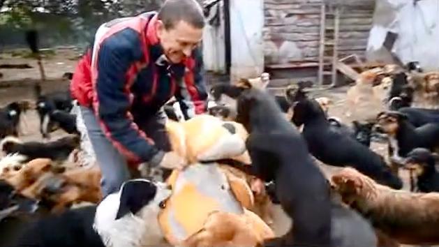 Secretly he devised a plan. He was going to create a place for these helpless dogs to run and be free, receive daily meals and feel the love of a human being. Little by little his plan came to fruition, and before long Sasa had 450 dogs in his loving care. And as you can see, his dogs are eternally grateful that someone finally took a chance on them to give them the life they truly deserved.