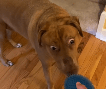 Belle, a lovable Doberman-cattle dog mix, was born with a rare birth defect that causes the muscles in her face to pull back, leaving her with an expression of permanent surprise. Her wide eyes and perpetually shocked face are unlike anything most people have seen, and it’s this one-of-a-kind look that has earned her so much attention online. While some might assume her condition is painful, Belle’s owner, Lieschen O’Neill, is quick to reassure everyone that it doesn’t cause her any discomfort. Belle’s unusual appearance doesn’t affect her health, but it certainly catches people’s attention wherever she goes.