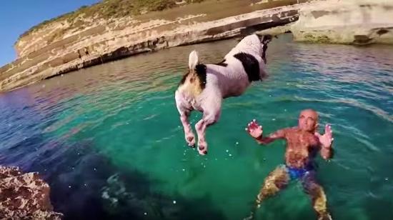 Now here we have another diving daredevil! Everyone, meet Titti–a dog who just loves to go diving with her human. Titti and her human, Carmelo, have been diving since she was four months old. She does whatever Carmelo does, and she goes wherever he goes. Carmelo even calls her his “shadow”. So how did Carmelo teach Titti to jump and dive? Watch the video below and learn his secret!