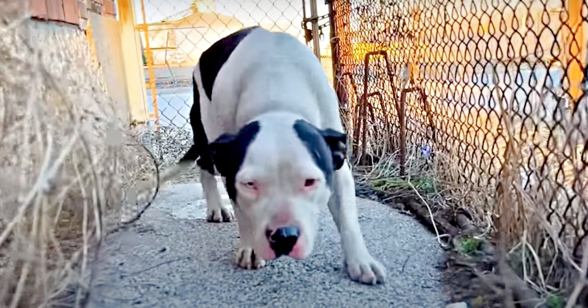 Donna from Stray Rescue of St. Louis came across a frightened Pit Bull needing help. As Donna neared the dog, the Pittie retreated to the other side of the building into a narrow alleyway. Armed with Vienna sausages, the rescuer spoke calmly to the poor pup. It was then she wagged her tail slightly.
