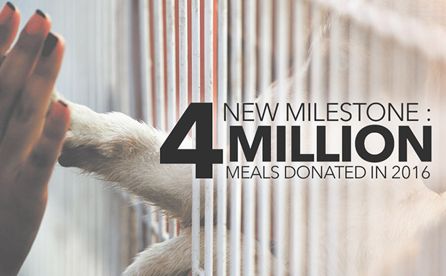 It is with great gratitude that we’re honored to announce another incredible milestone: 4,000,000 meals donated to shelters so far in 2016!