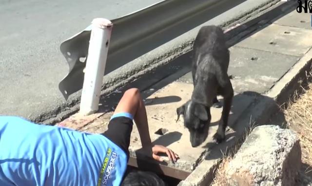 In Thailand, a puppy got away from his mom and ended up getting stuck in a storm drain. Thankfully, the people around the area called for help when they heard the puppy’s cries and noticed the distressed mother dog.