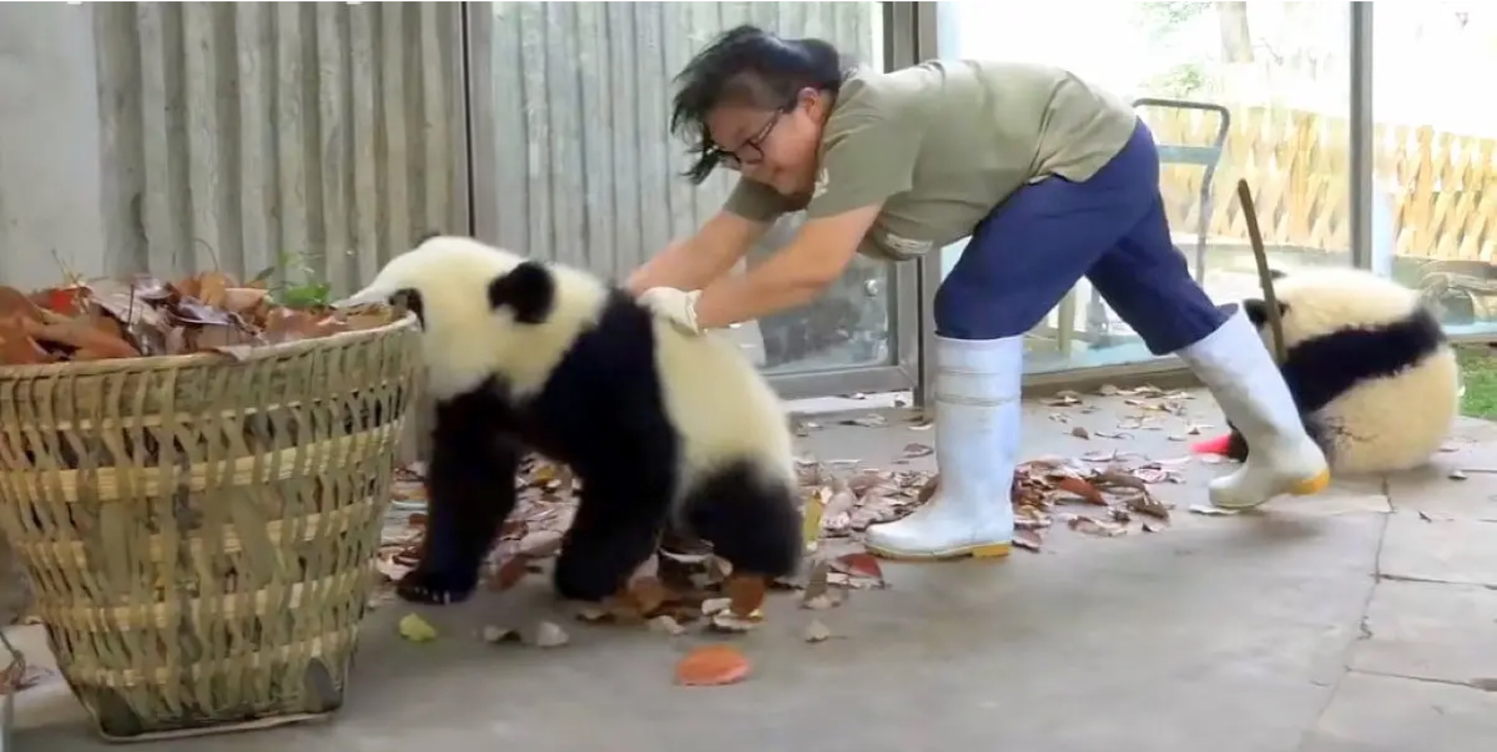 Clearing leaves is a monotonous and tiring task as it is. And if we know anything abut baby Panda’s, it’s that they are notoriously clumsy, mischievous and just seem to want to have fun. Their curiosity and playful nature cause them to create havoc for anyone who may be in charge of them.