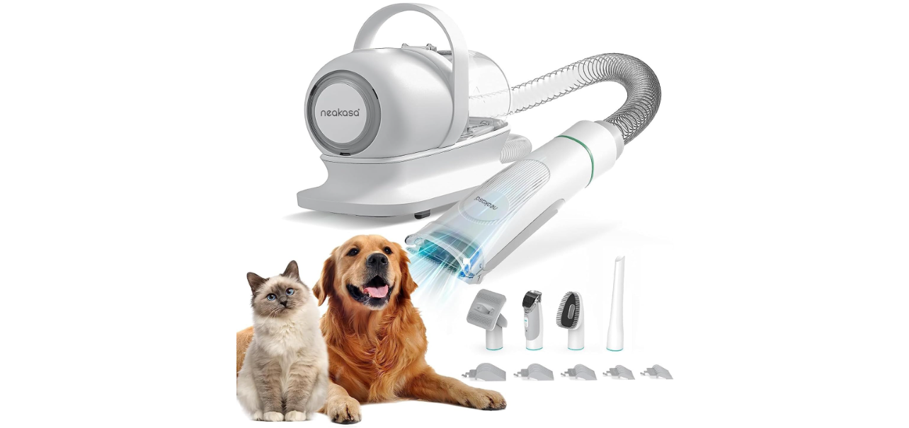Our team has been impressed with the Neabot P1 Pro Pet Grooming Kit & Vacuum. This all-in-one grooming kit is designed to make pet grooming easier and cleaner. With five proven tools, including a grooming brush, DeShedding brush, electric clipper, nozzle head, and cleaning brush, this kit offers everything you need to keep your pet looking and feeling their best.
