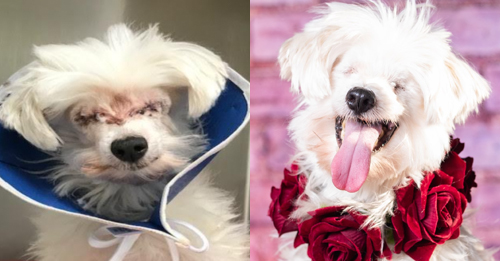 When Star was removed from the breeder’s home, her fur was so severely matted that her eyes had been forced shut. The veterinarian had to cut through all the knotted fur on her face. When they finally cleared up the mess, they were surprised to find that poor Star had no eyes.