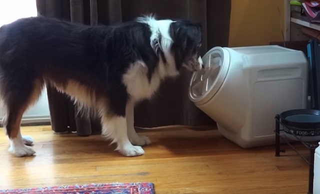 However, the dog in the video below has somehow learned how to open the dog-proof container! This dog named Meme is so smart that she somehow figured out how to open the dog-proof container so she can enjoy eating dog food any time she likes!