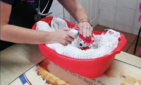 Initially, Le Roux thought someone might play veterinarian in response to her request. To her surprise, a practicing doctor responded and agreed to treat the patient. Dr. Tammy McNair at Seadoone Veterinary Clinic volunteered her time. The clinic’s website describes Dr. Tammy as “a compassionate veterinarian, who prides herself in patient wellbeing, as well as the understanding of emotions expressed by pet owners who visit her clinic in times of need.” We agree with that sentiment!