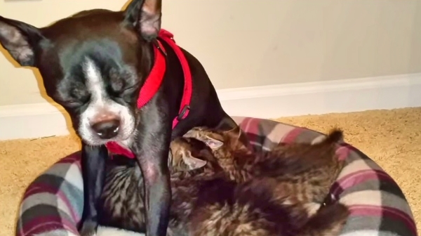 You can read the whole story about Memory and her adopted orphan kittens at http://www.huffingtonpost.com/2015/01/28/boston-terrier-kittens_n_6556546.html